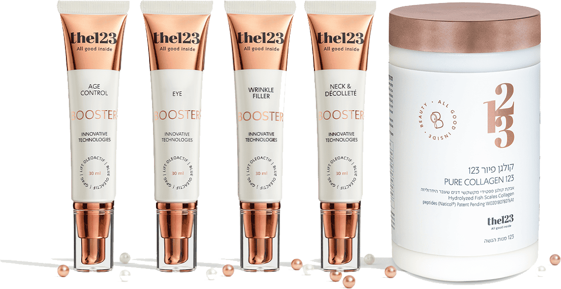 מומלץ (לא חובה) להוסיף טיפול תומך חיצוני לשמירה על הרעננות הטבעית שלנו, ולכן, ברכישת מארז שנתי של ביו קומפלקס קולגן 123, תקבלי במתנה מאיתנו ערכת הכוללת 3 ממוצרי סדרת ה-Age Control Booster הבלעדית של The123 עם קומפלקס הרכיבים הייחודיים לטיפול המושלם.